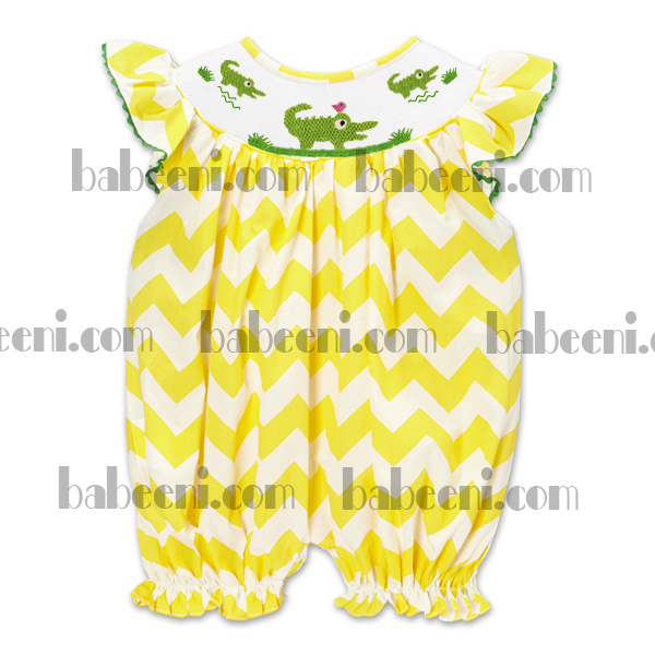 Feature: hand smocked alligator girl bubble
