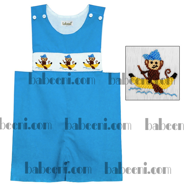 Feature: This shortalls is very lovely with cute hand smocking embroidered patterns of three monkey sailing on Banana boats