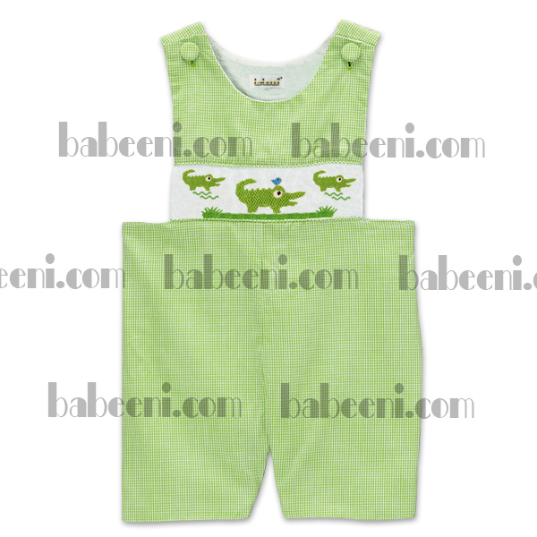 Feature: A cute shortall for little boys with three Alligators hand smocked embroidered on the bodice