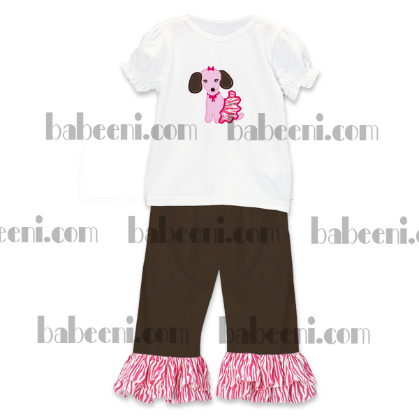 Feature: This set is very beautiful with a lovely shirts and a pants. The shirts is very attractive with cute puppy applique'