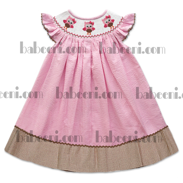 Feature: A very lovely bishop dress with exquisite hand smocking embroidery pattern of cute owls