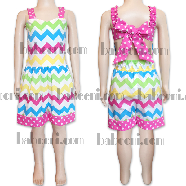 - top: white plain with hot pink polka dot on collar