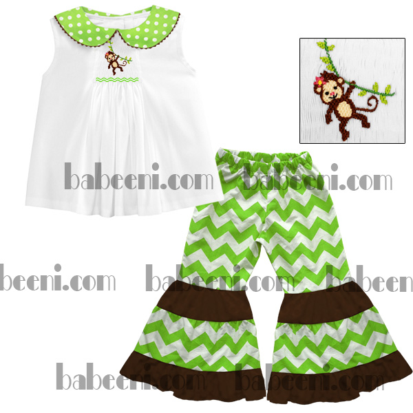 Feature: Lovely girl set with hand smocked monkey on top