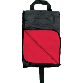 Water resistant poly liner back. Velcro pouch for easy embroidery. Sewn in handles for easy carry. Anti-pilling fleece in side.