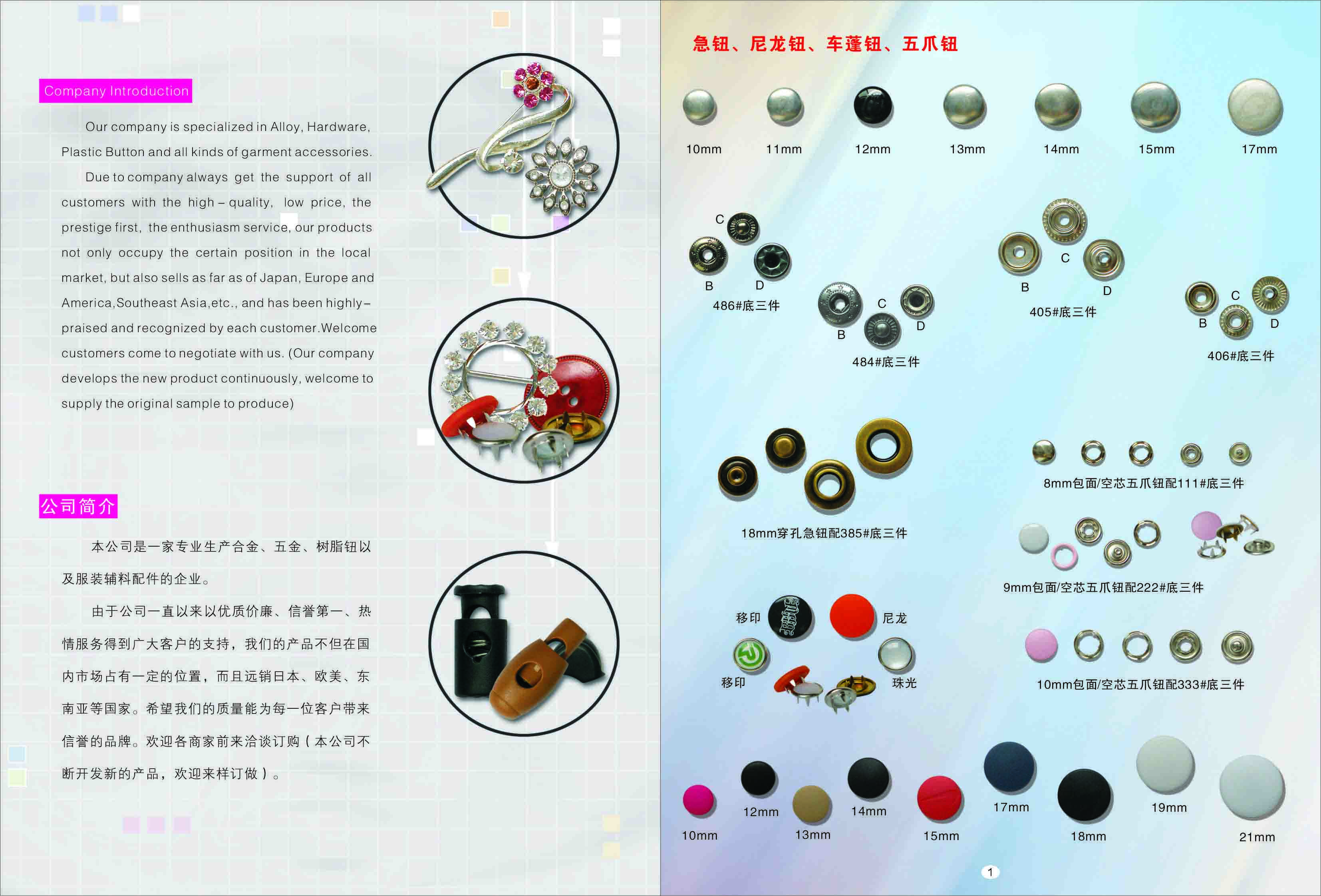 We are major in producing all kinds of metal buttons in brass, steel, zinc. We put our heart into making good quality products and the best service. We ave our own moulds makers, and can do the moudls…