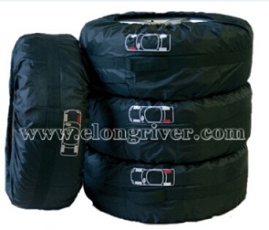Black Polyester Seasonal Car Tire Cover / Tire Tote Set: