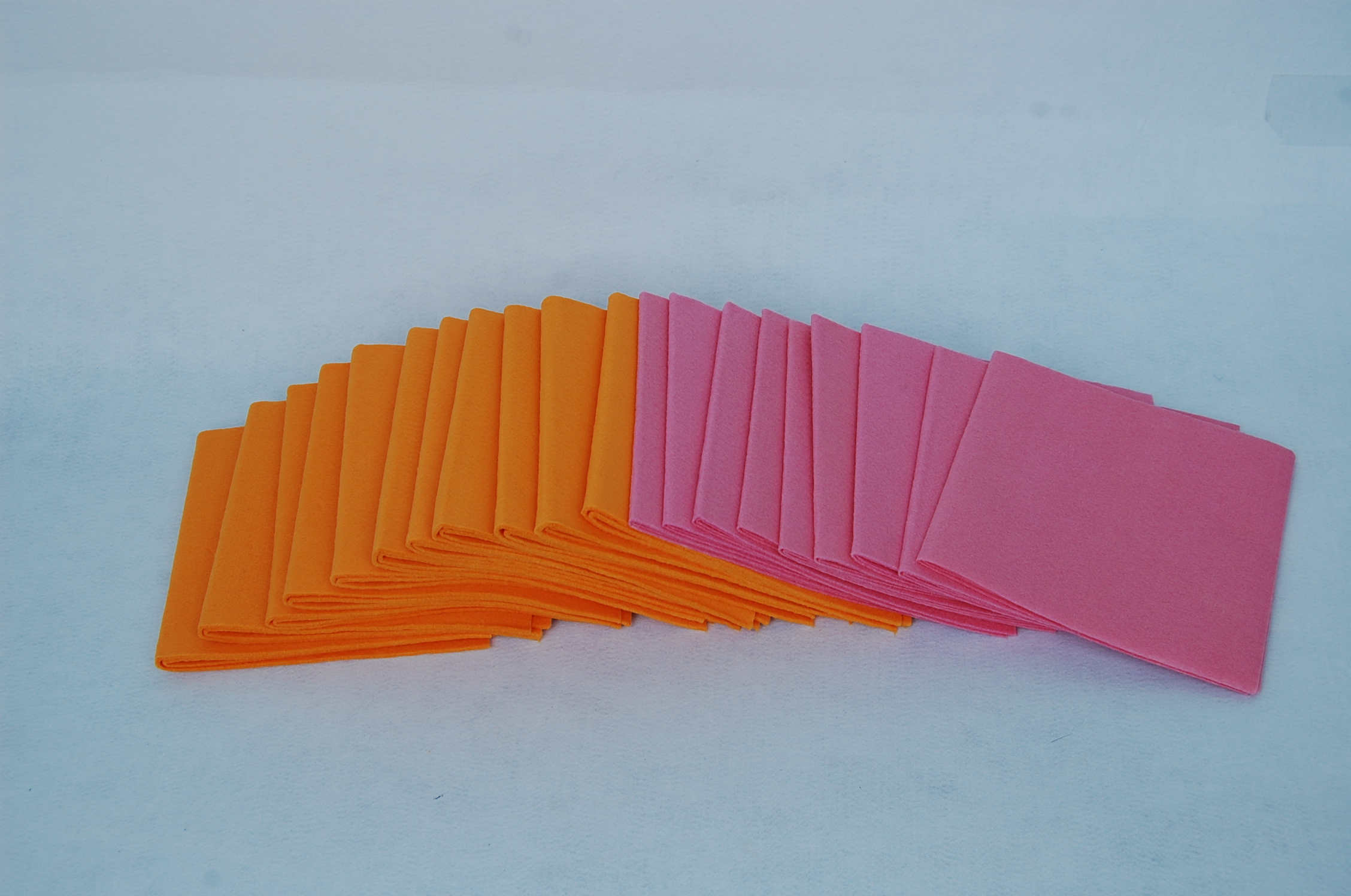 Packing: 11 pcs orange,9 pcs pink ,1/4 folded,packed with 1 papar card into OPP bag or to customers' requirements.