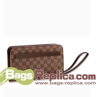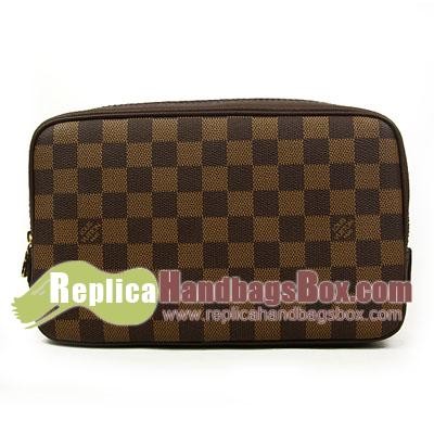 - Damier canvas, textile strap, smooth chocolate colored leather trimmings and lining