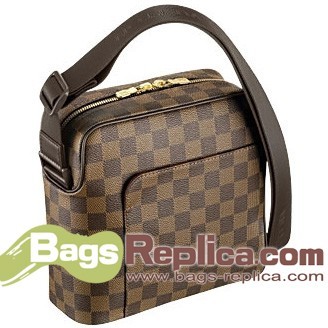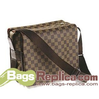- Damier canvas with chocolate leather trim
