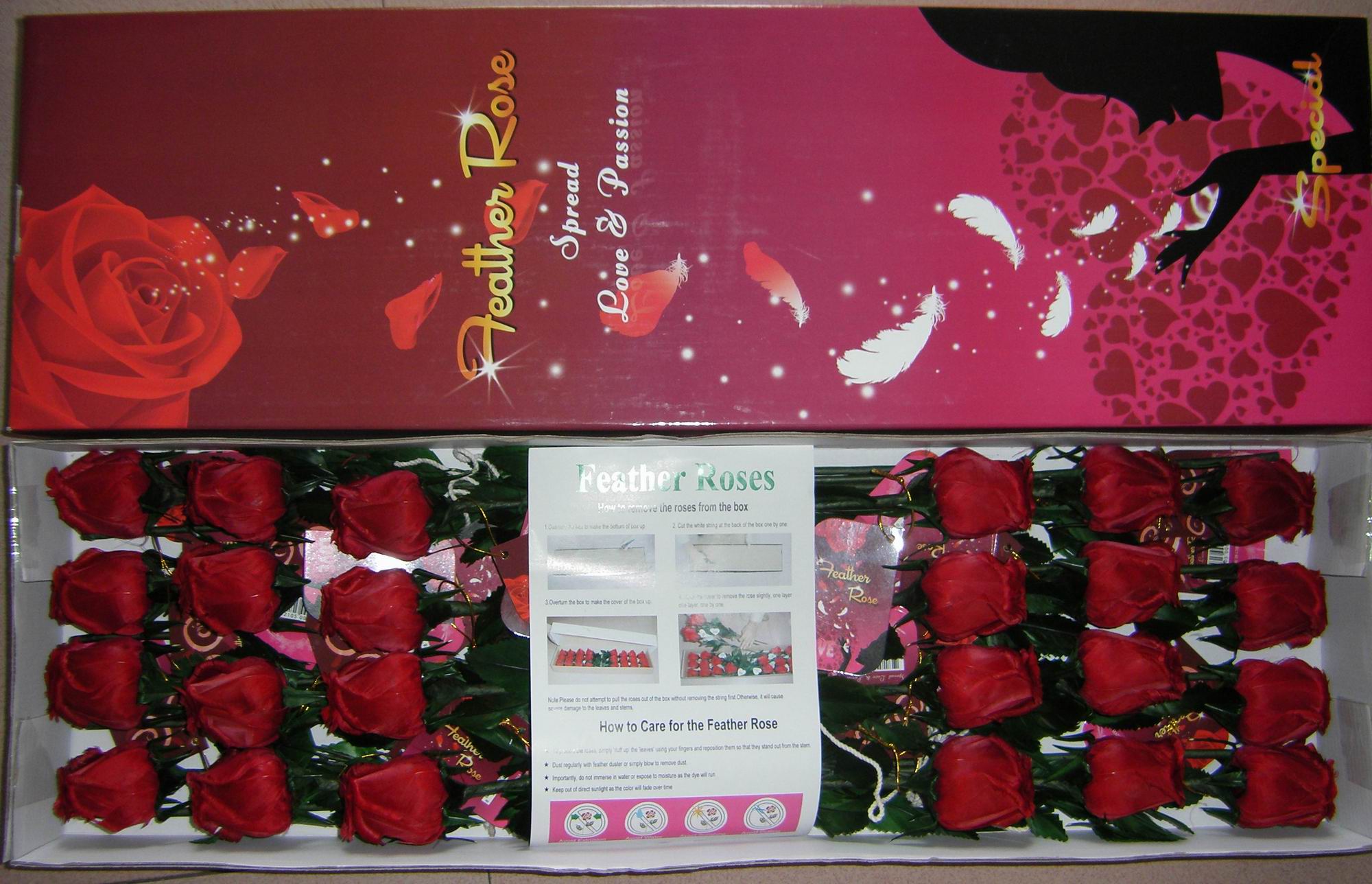 It’s such a new and special item, all handmade by natural goose feathers, with a rose smelling, each one is a unique piece of art of high quality, like a real rose, very shining and special, attract e…