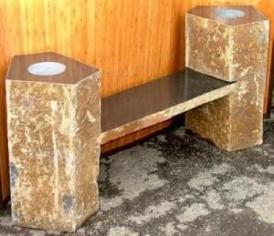 ;stone bench height 35-40cm width 30-40cm length 100-120cm top: seats sink, polished two ends' sawn this basalt is new quarry we find it, and we have get the right to exploit it. it is ver…