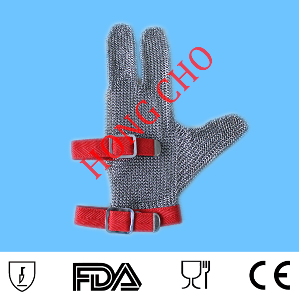 TOP AFTERSALE SERVICE! stainless steel mesh gloves three finger cut resistant metal safety gloves brown butcher glove