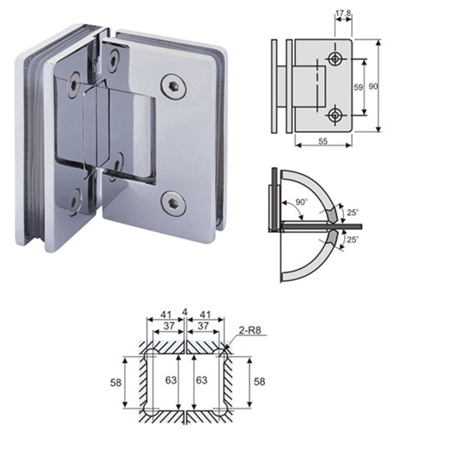 Description 90 degree shower hinge