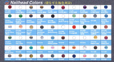 Nail heads have most colors in the market; It has best shining and brightness. Now it has 52 colors and 48 shapes, it also includes shapes like ring, square, heart, moon, star, hexagon, oval, eyelet, …