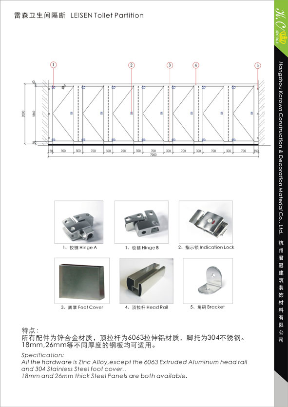 All the hardware is Zinc Alloy, except the 6063 Extruded Aluminum Alloy head rail and 304 Stainless Steel foot cover.