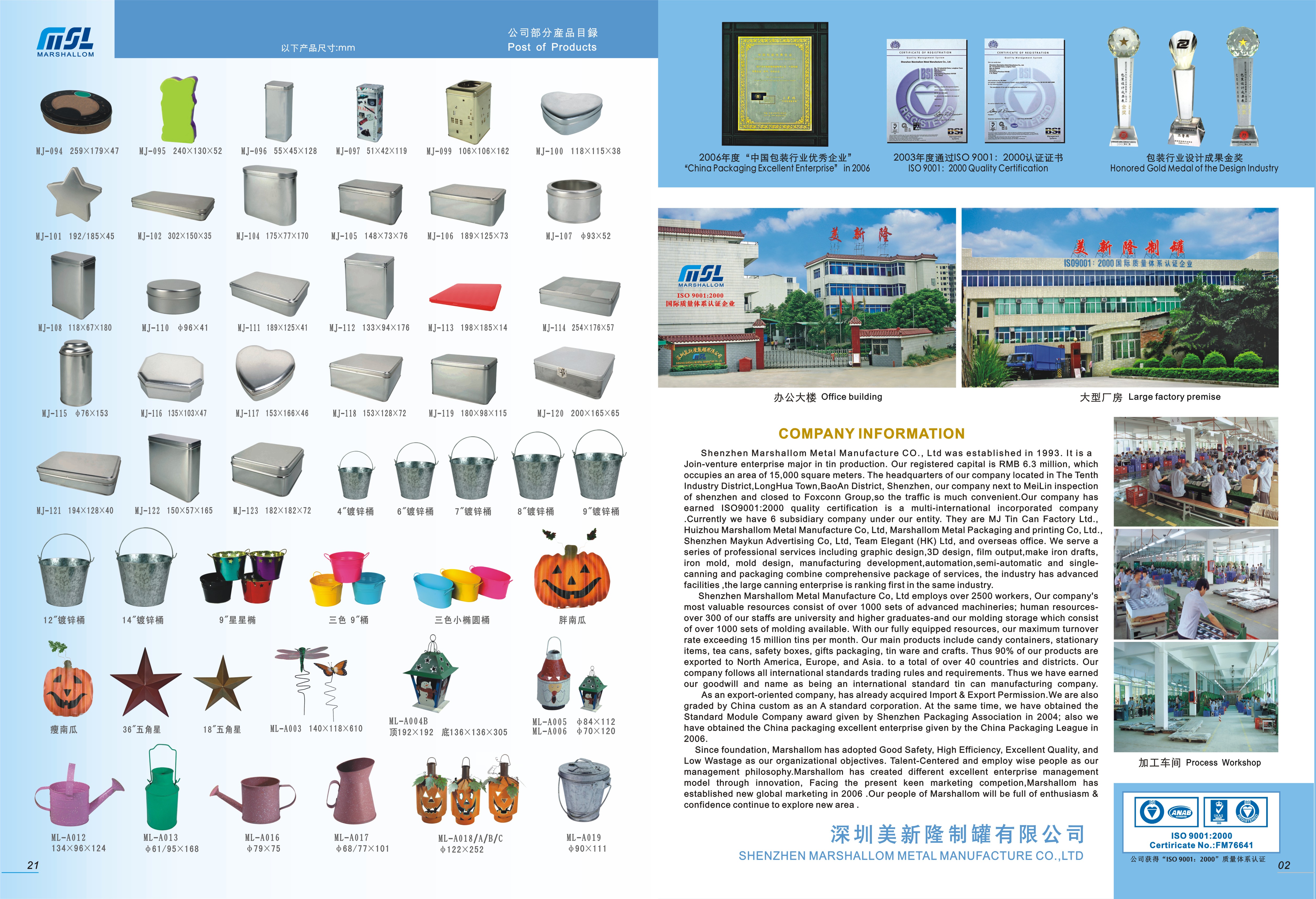 Shenzhen Marshallom Metal Manufacture was established in 1993. It is a Sino-Foreign joint venture for tin packing products with ISO9001:2000 certified. Now the company has registered capital of RMB 6.…