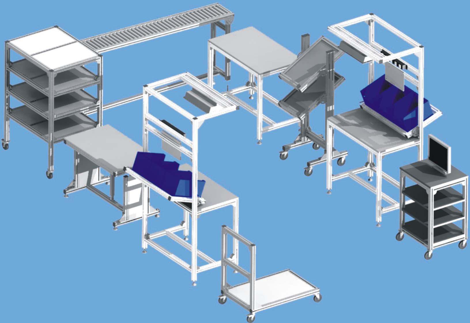 Flexi Manufacturing Solutions has Aluminium extrusion profiles and required mounting accessories to build Assembly Tables, Material Transfer Trolleys, Conveyors, Inspection Tables etc.