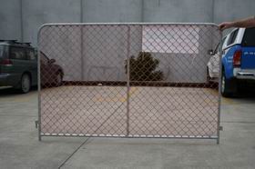 Security fence panel, with Alert orange color chain link or weld mesh infilled, used as temporary fencing...