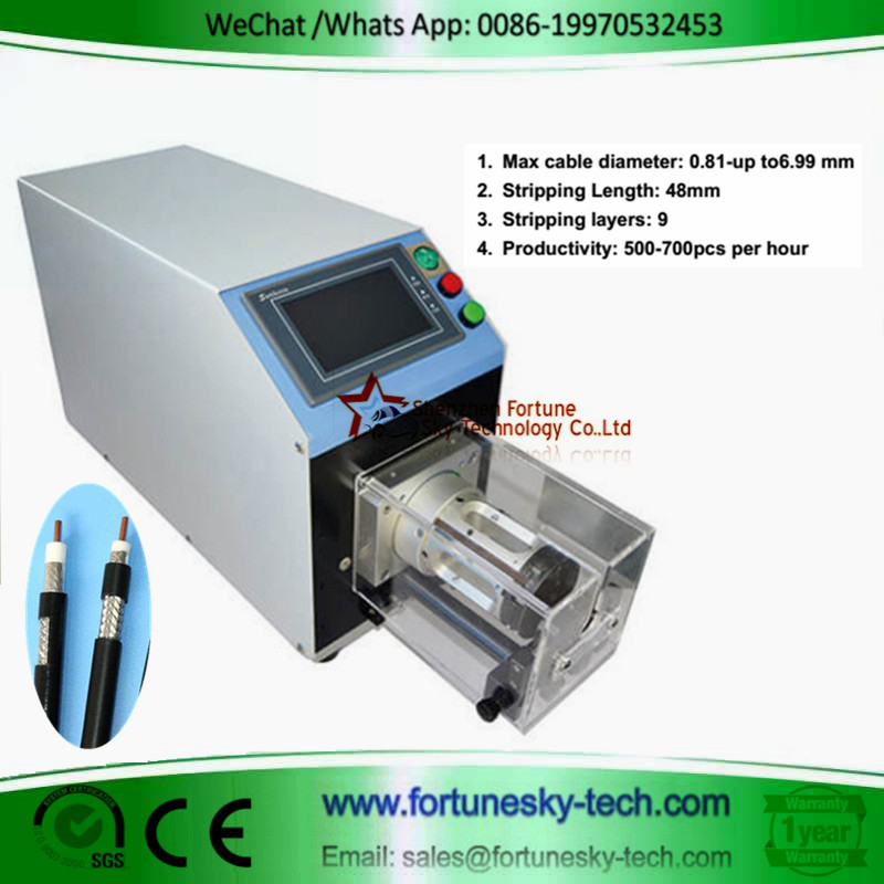 This rotary coaxial cable stripping machine is