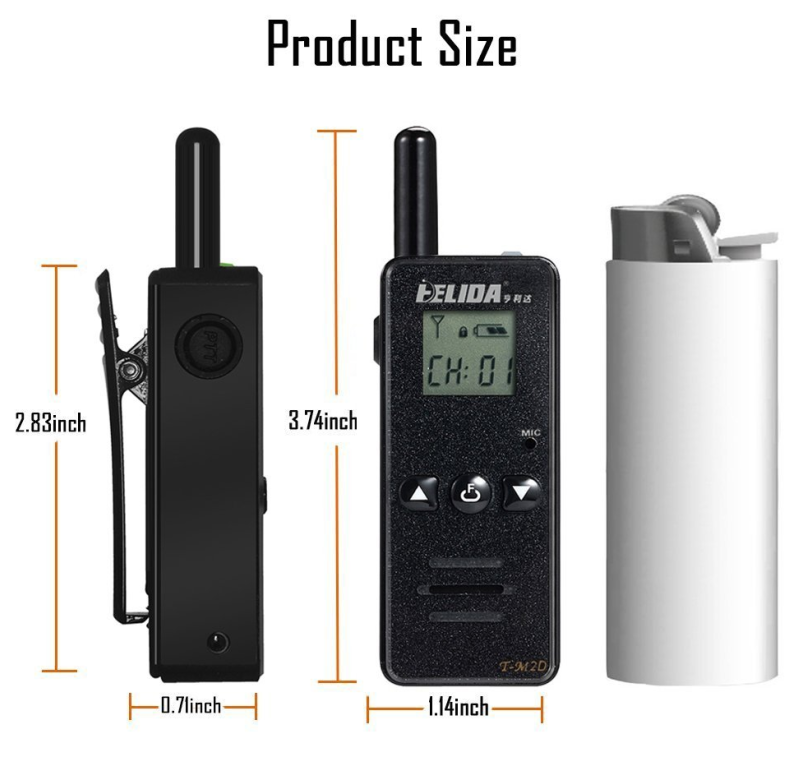 Super Mini Walkie Talkie Two Way Radio HELIDA T-M1P 25 Channels FRS GM...