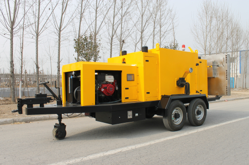EAGER series blue flame hot recycling comprehensive maintenance vehicle integrates asphalt recycling heater, asphalt concrete hotbox and emulsified asphalt sprayer in the same chassis. Rear of the uni…