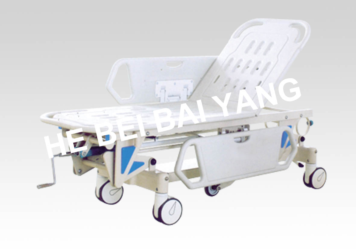 It is a manual emergency stretcher, when you turn the crank right, the bed will be up, vice versa, it will be down.