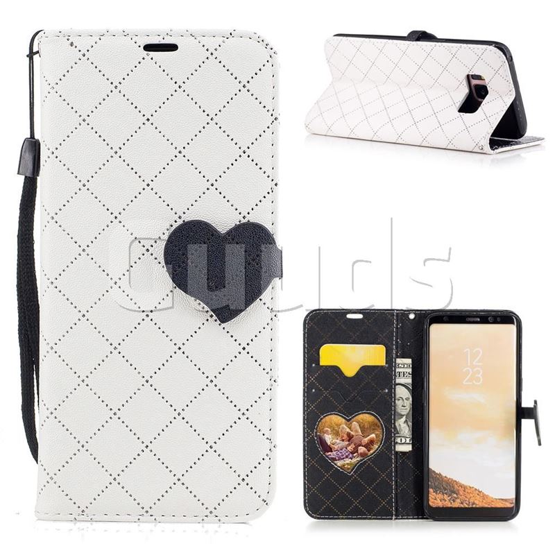 Symphony Checkered Dual Color PU Heart Leather Wallet Case for Samsung Galaxy S8 - White