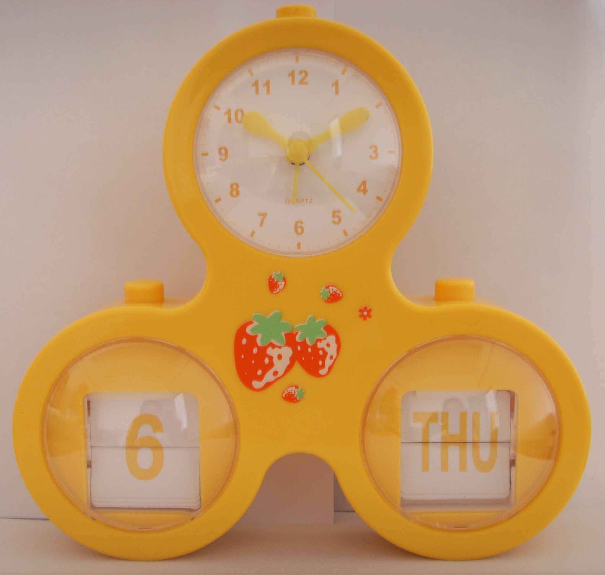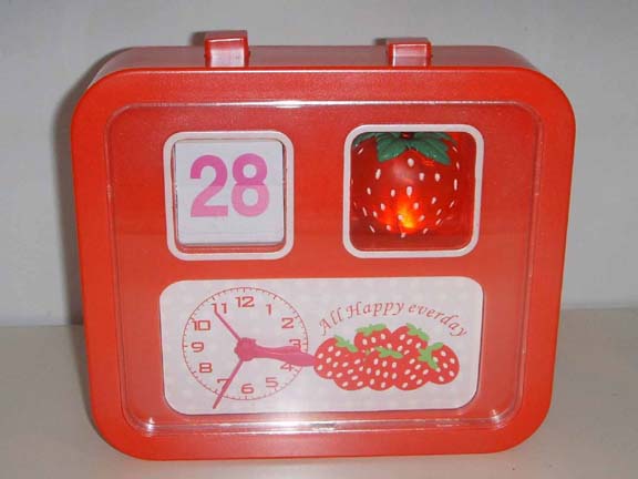 The calendar clock showes the date in the bottom windows. There are day,week and month to choose. In the top window is alarm clock. You can design the clock face picture. The middle of calendar clock …