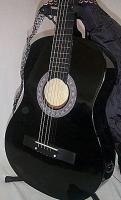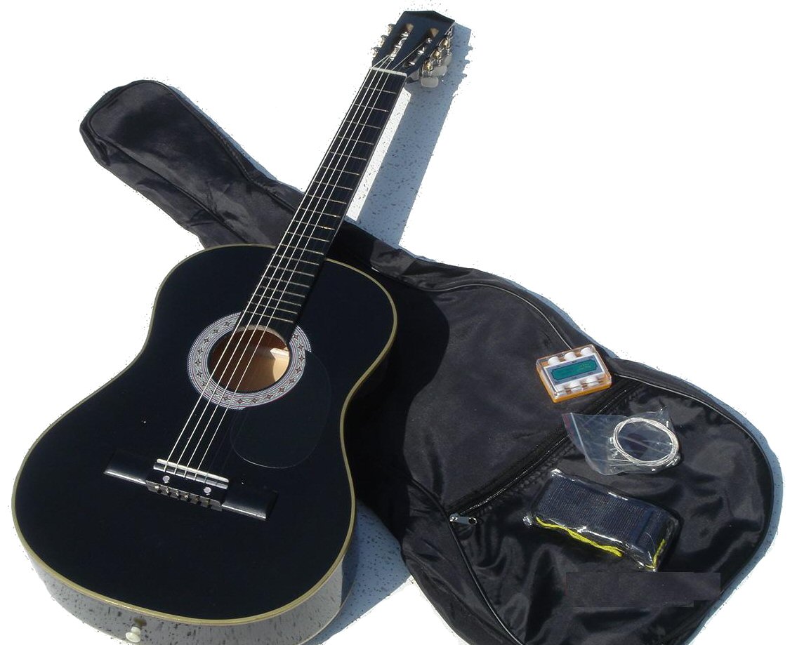 `BLACK ACOUSTIC GUITAR + CASE, TUNER, STRINGS & & STRAP