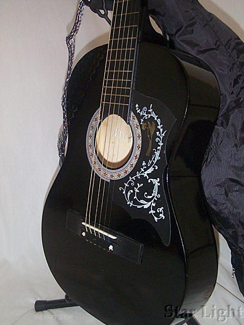 'BLACK ACOUSTIC GUITAR + CASE, TUNER, STRINGS & STRAP