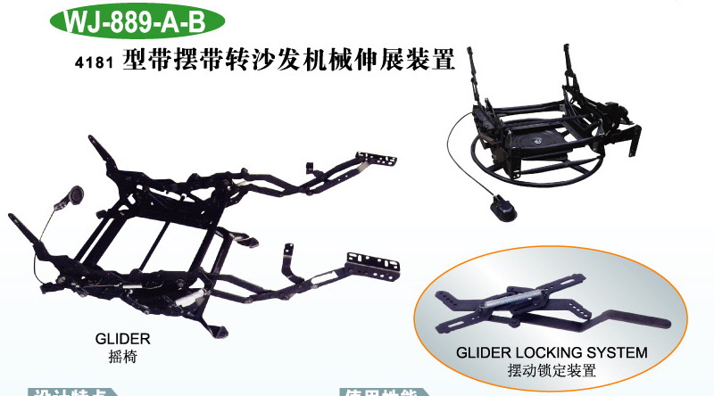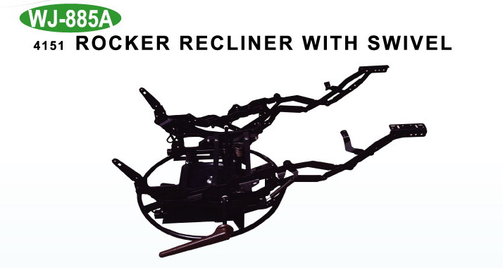 This recliner/rocker mechanism can be used in recliners and sofas that recliners, rocks and swivels. The mechanism enables users to easily fold and unfold the footrest and the backrest by using handle…