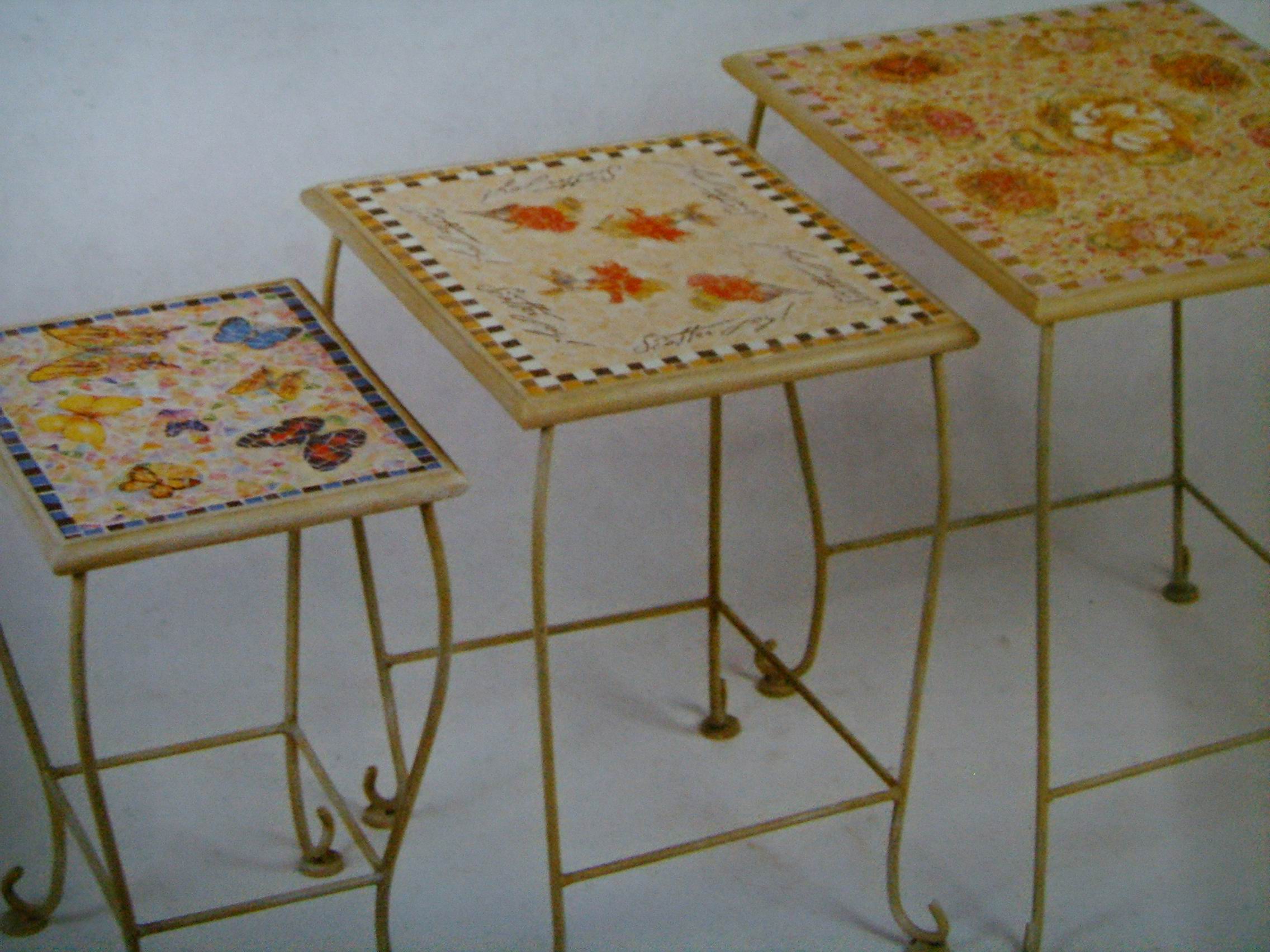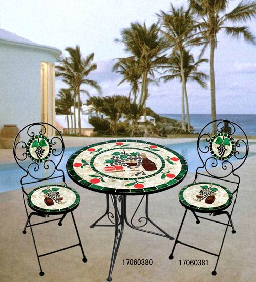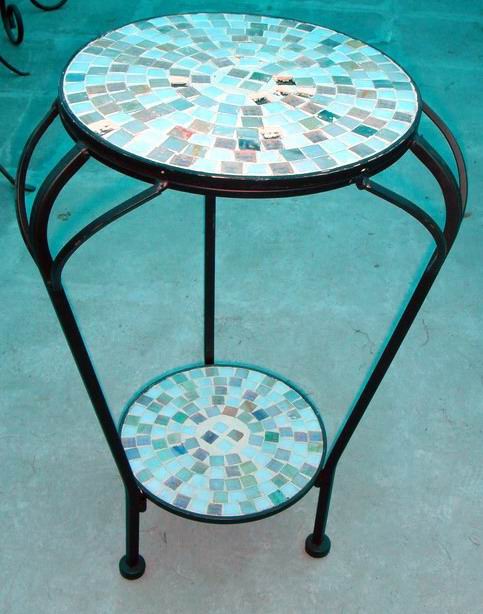 The Stained Glass Mosaic Furniture are made up of stained glass and iron structure. It has various of goods including: table, end table, chair, wine rack, shelf, flower rack,dresser and feeding trough…
