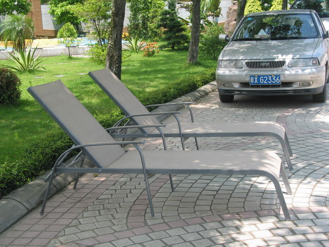This Chaise Longue is made by aluminium and al-cloth. It's leisure and mordern, which is fit for nowaday life. And this chaise longue have two arms and can regulate up and down freely.