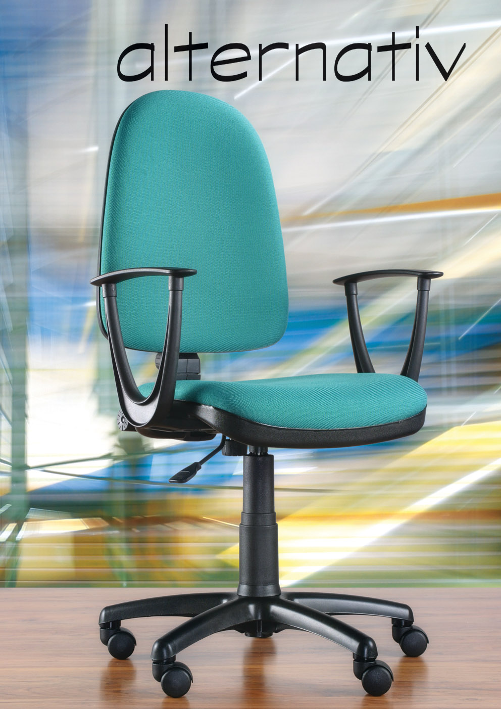 Alternativ is the simplest model of the swivel chair proposed by our company. In standard has upholstered seat and backrest. Height adjustment is via a pneumatic lift, chair has mounted a mechanism CP…