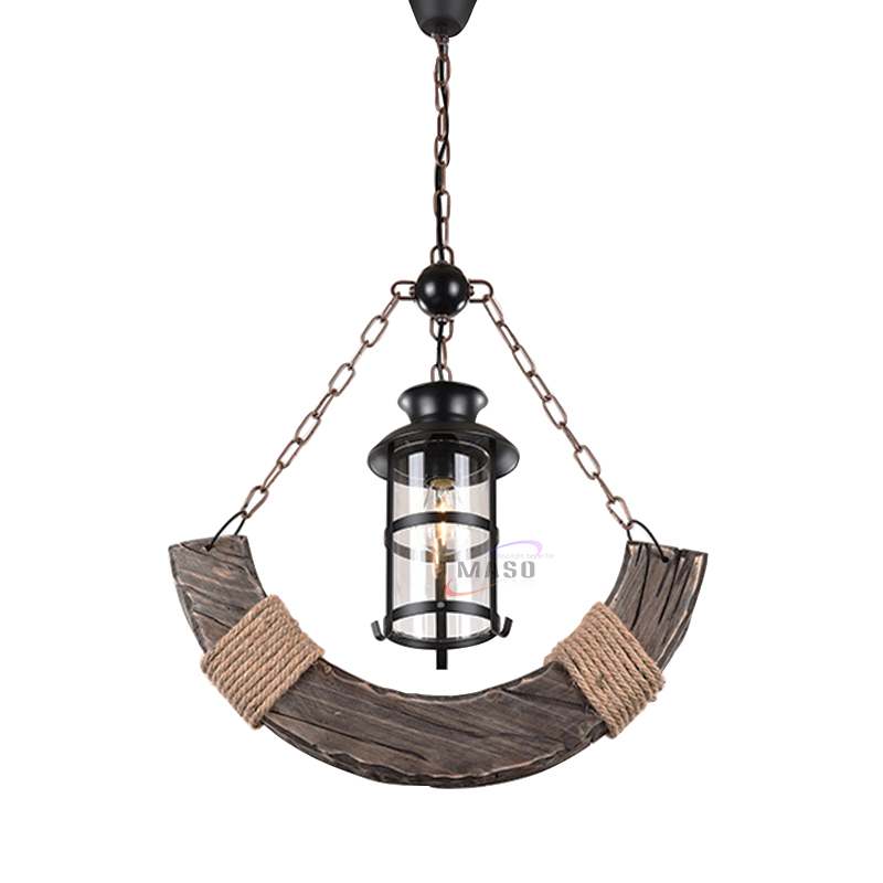 Rustic boat wood chandelier light with adjustable chain hanging lighting fixtures
