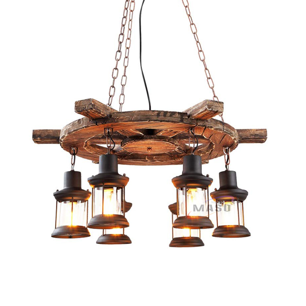 Home decoration retro wooden chandelier ceiling restaurant pendant light