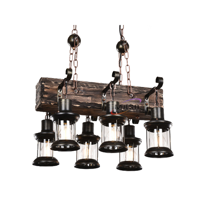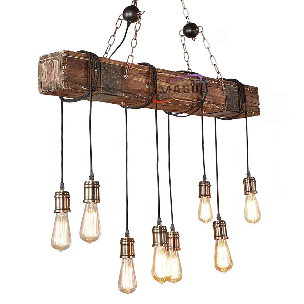 Retro vintage chandelier long wood lighting pendant lamp
