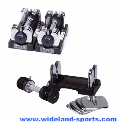Versa bell, dumbbell set which is easy to be assembled and disassembled.