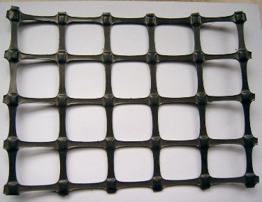 Biaxail geogrid : in the hot box , punch the pp or pe plastic flat .tenilsed the flat from two side to get the net .
