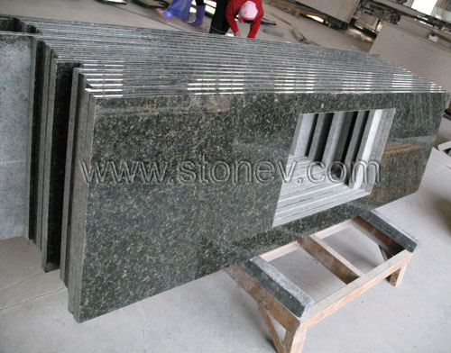 we can supply beautiful coutertops with high quality.Its material is Verde Ubatuba which be imported from brazil.Its surface and one long edge are polished,with overmount sink hole,square or round sin…