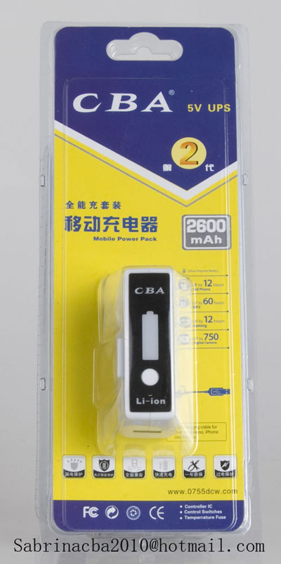 CBA mobile charger is designed for the majority of business people and outdoors to avoid the blackout of electronic products. CBA charger can be used for mobile phone, Ipad, PDA, PSP, MP3/MP4 and oth…