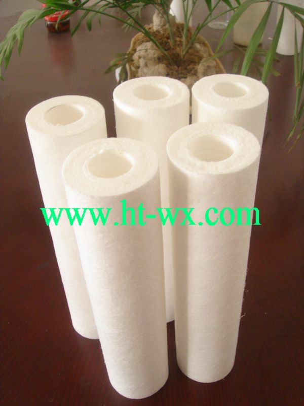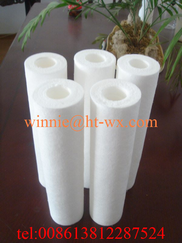 We produce complete production line for melt blown filter cartridge for water purifying.