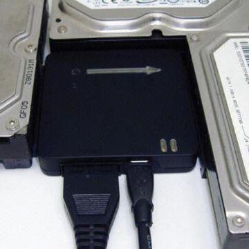 External HDD adapter with black plastic body, screwless design