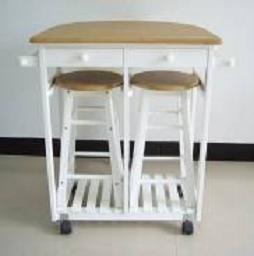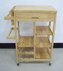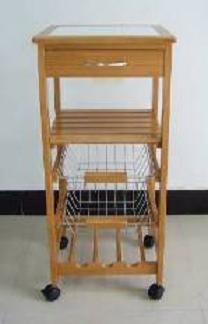 An incredible accessory to any kitchen. With its varnished worktop, one pull-out drawer, built in wine rack with a capacity for three bottles. Two baskets and one built in slatted storage shelf.