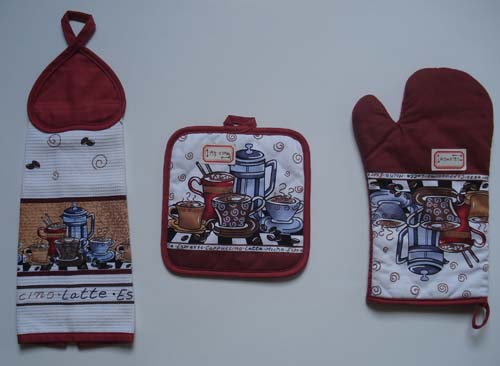 Product:Kitchen sets including Over mitten,Pot holder and Clear towel.
