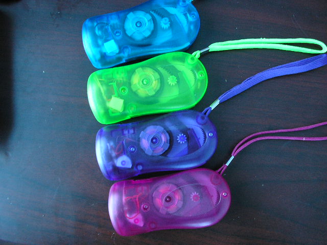 Dynamo LED flashlight, by hand pressing;