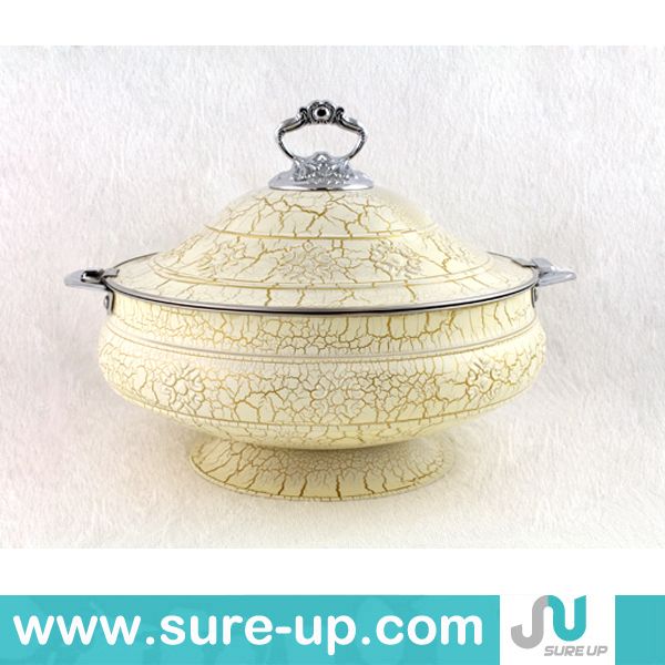 Specifications 1. Luxurious Arabic Style Stainless Steel Biggest Food Warm Container 2. S/s inner 3. Metal coating outer body 4. Keep food hot 5. Rock button handle 6. Capacity: 4L 6L 8L …