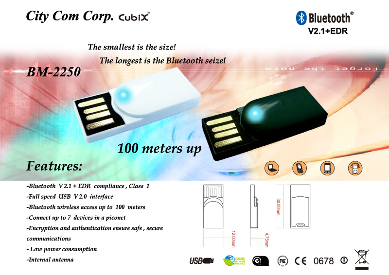 -Bluetooth V2.1+EDR compliance, Class 1