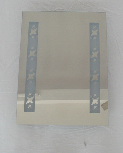 IP44230V 2*T5 MAX 14W FSL chinese bulbs(2700-300K), L700*W600 mm,square glass,w/diamond and strip decoration, white painted back plate, pull switch