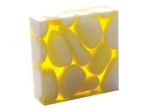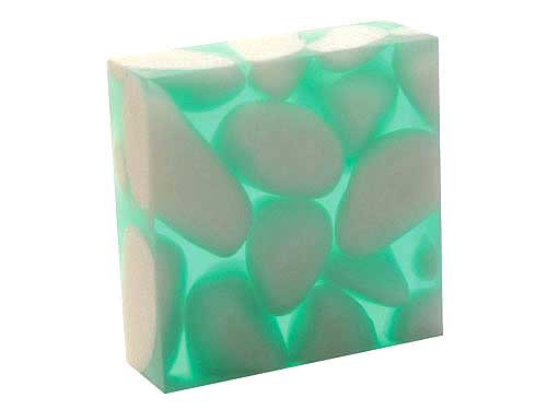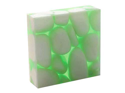Icestone pebbles of pure white are selected and graded before being suspended in a clear or pigmented resin binder to form blocks. The cured material is sawn and polished to form slabs and then tiles,…